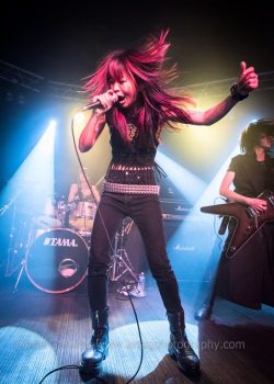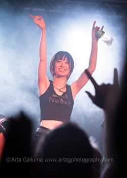 Haru’s dark growls were complementing Kimi’s clean lead vocals and there was plenty of fretboard wizardry from Ayumi and Moe- the newest member of the band who replaced previous guitarist Misaki only couple of months before the tour. And Natsumi hiding behind the drum kit was a real powerhouse.