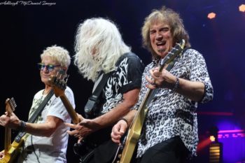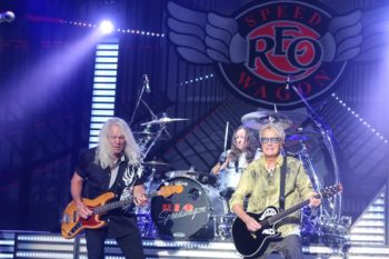 Midwest favorite, REO Speedwagon takes the stage at Starlight on what is the hottest night of the summer so far. Tuesday night (June 14th, 2022) in Kansas City, REO ends the triple bill as the night’s headliner with Styx and Loverboy. Fans were out in droves for a well welcomed post-pandemic return of live music. The much-anticipated return of such a large production performance led to a sold out show. Speedwagon has such a well established history with Kansas City from the 1970’s Summer Jams to today. The band always reflects on the famous tornado event in 1978 at Royal’s Stadium where the fan base stayed in the arena, regardless of the tornado sirens. They also shout out to KY 102 radio station for supporting them in Kansas City.