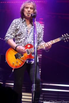 The current line up has remained unchanged since 1989. Neal Doughty on keyboards hasn’t missed a show since the inception of the group in 1967. Kevin Cronin (KC) on lead vocals, rhythm guitar, and piano has fronted the group since 1976. At the age of 70, as KC reminds us, he has the energy and stamina to sing the fullest set! Bruce Hall on bass guitar has been with the group since 1977 and also has roles with lead and backing vocals. During Back on the Road Again, Bruce delivers a powerful and unwavering vocal performance. Dave Amato on lead guitar, and Bryan Hitt on drums are the new guys joining the group in 1989. During the electrified crowd favorite, Ridin’ the Storm out, both Dave and Bruce share a guitar solo while running back and forth across stage. At then end of the set, Kevin thanks the fans for being so amazing and promises to return to the city for another show. A promise from KC to the town of KC.